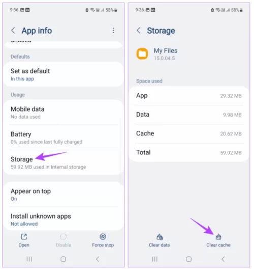 Adım 2: Depolama > Önbelleği temizle öğesine dokunun.