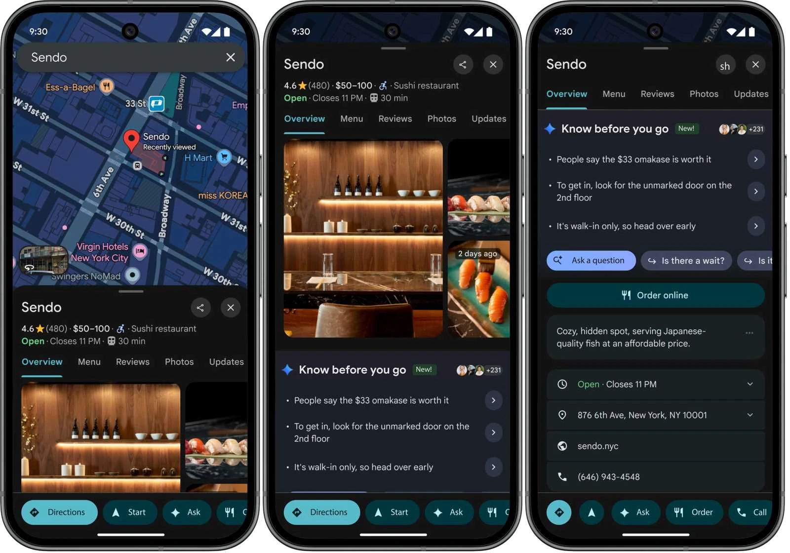 Haritalar’da restoran, otel veya konser salonu gibi yerleri aradığınızda, artık aşağı kaydırarak ” Gitmeden Önce Bilmeniz Gerekenler” adlı yeni bir bölüme erişebilirsiniz. Adından da anlaşılacağı gibi, bu bölüm “rezervasyon yaptırmanın en iyi yolu, gizli menü öğeleri, park yeri ipuçları ve daha fazlası” gibi en önemli bilgileri vurgulayacak.