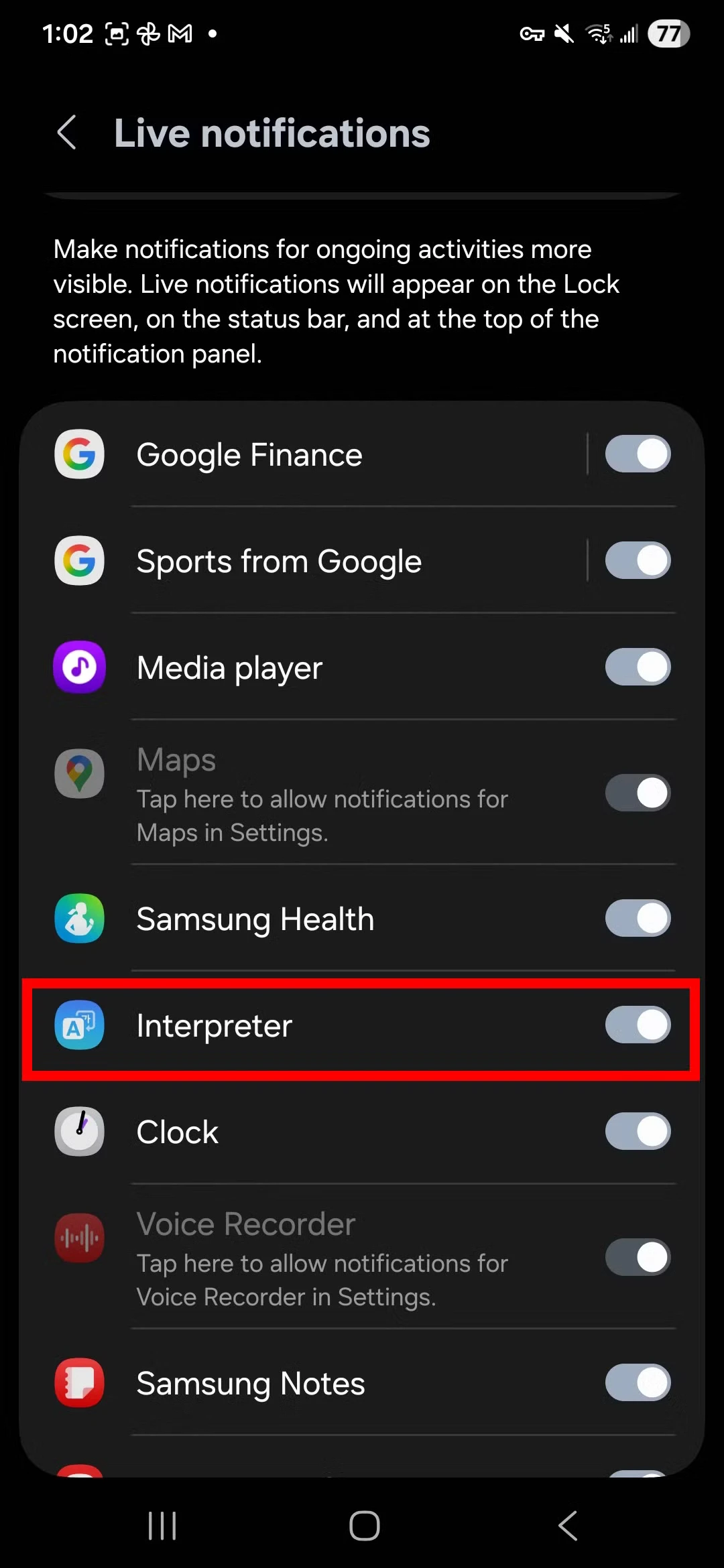 - Canlı bildirimleri etkinleştirmek istediğiniz uygulamaların yanındaki geçiş düğmelerine dokunun. İstediğiniz zaman bu bölümü tekrar ziyaret ederek geçiş düğmesine tekrar dokunarak bildirimleri kapatabilirsiniz.